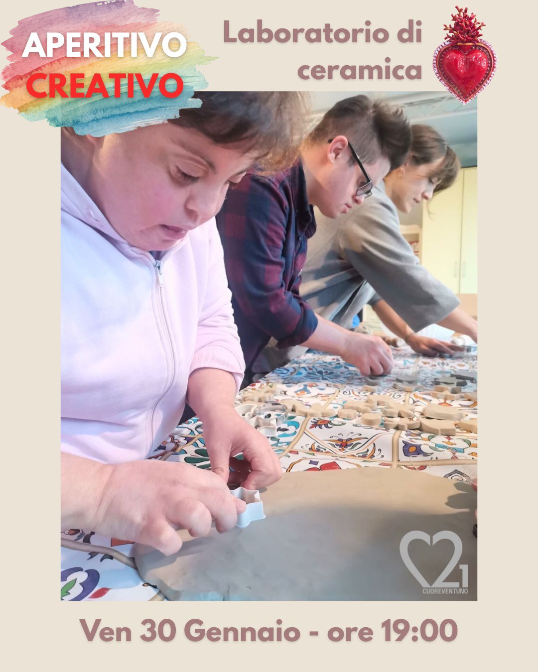 Nel laboratorio verranno realizzati Cuori Sacri Ex Voto in ceramica e sarà offerta una gustosa apericena