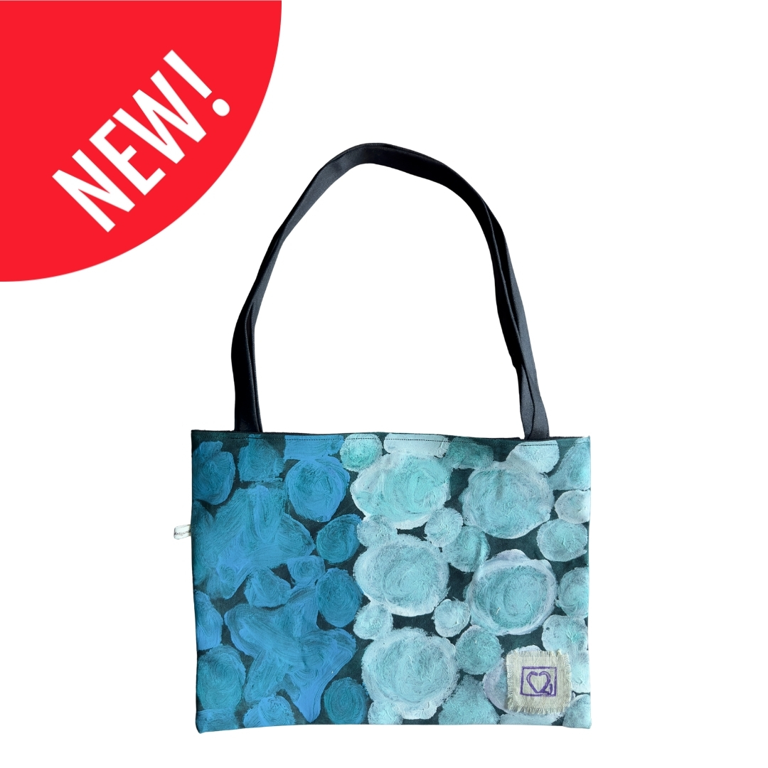 Ogni borsa è un pezzo unico, cucito e dipinto a mano con cura e passione.